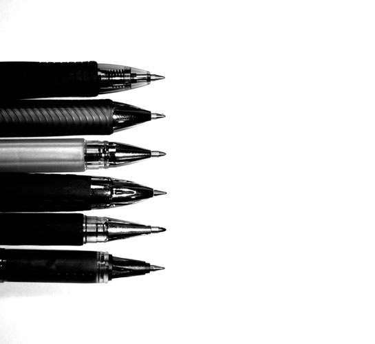 Dari SMP aku selalu menggunakan Jel Pen. Karena warnanya lebih pekat dan rata (seperti spidol) sehingga ketika aku membuat gambar karakter, gambaranku menjadi lebih terlihat rapih. Namun itu kelemahannya, ketika gambarku terkena air, gambarku langsung luntur (Waktu itu aku belum mengenal Drawing pen)..